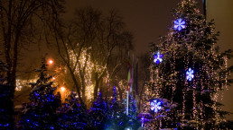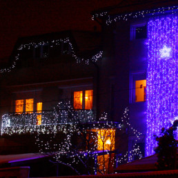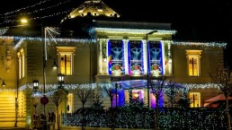 Eleganta cladirilor este accentuata prin detaliile luminoase, menite să ofere balustradei exterioare, un aer special de sărbătoare. Totodată, brăduții exteriori au fost împodibiți cu aceeași instalație în stil clasic, dispusă armonios conform formei acestora.