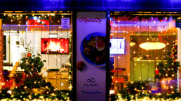 Fiecare magazin se transforma cu ocazia sarbatorilor intr-un mic atelier al Mosului, care trebuie sa te atraga de la prima privire. Cea mai buna solutie este decorul interesant al vitrinei, prin lumini dispuse vertical la distante egale, pentru a mari vizual dimensiunea acesteia, invaluind interiorul in aer de sarbatoare.